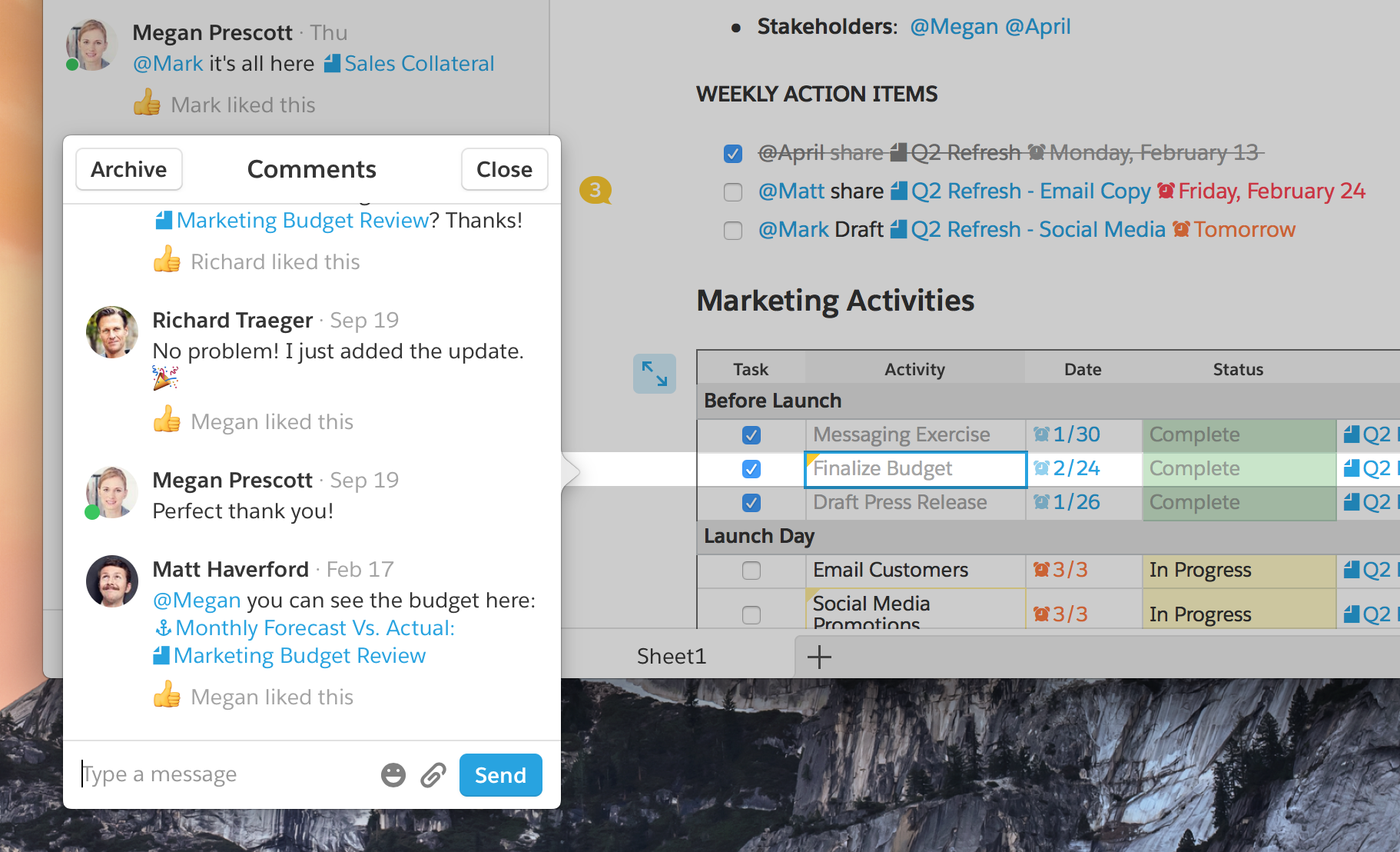A screenshot of a busy user interface in Quip